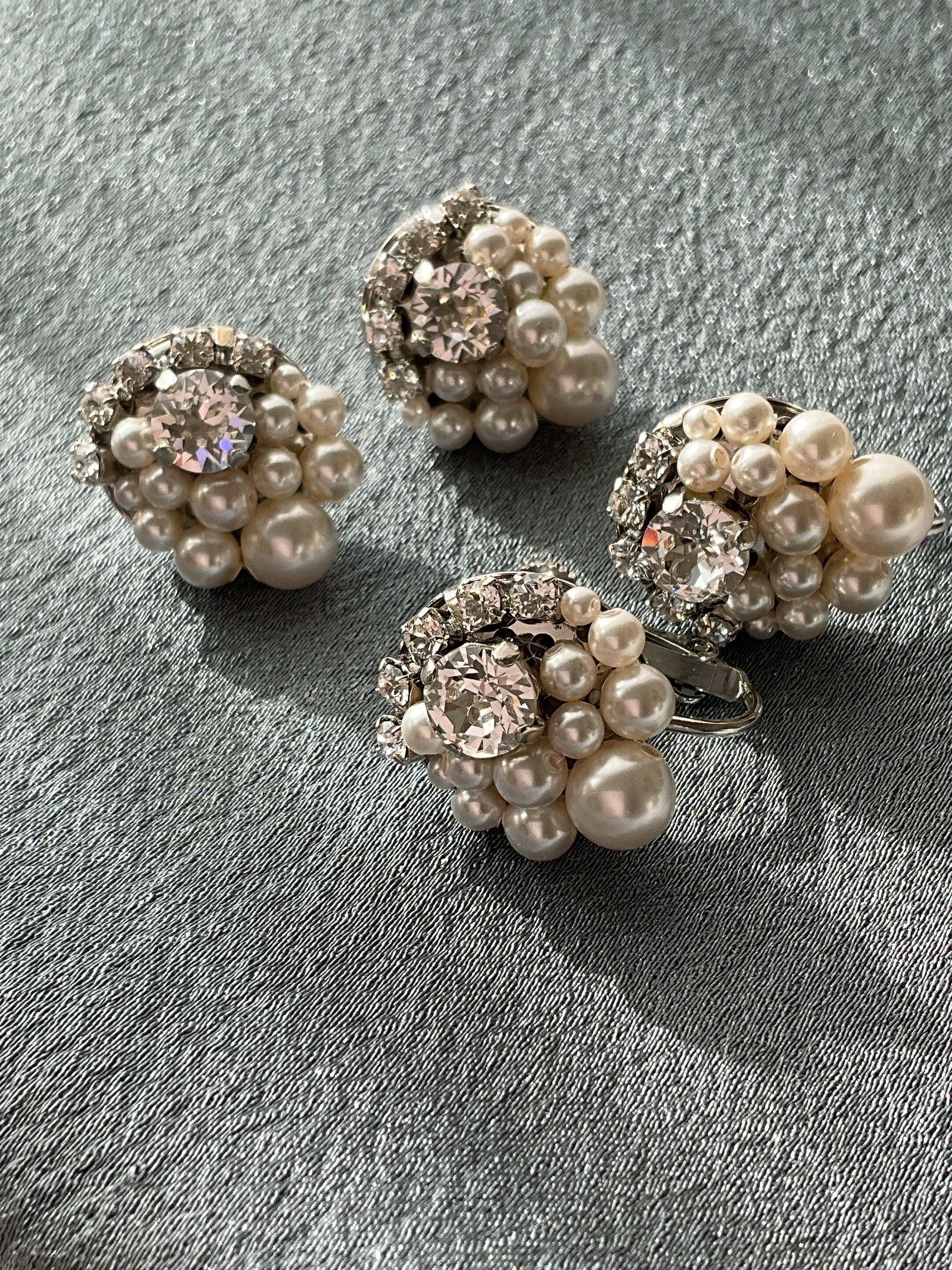 スワロフスキー社製のパールとクリスタルビジュを組み合わせ、美しい輝きを楽しめます。パールの持つ上品さとクリスタルの輝きが、あなたのコーディネートに特別な魅力を加えます。