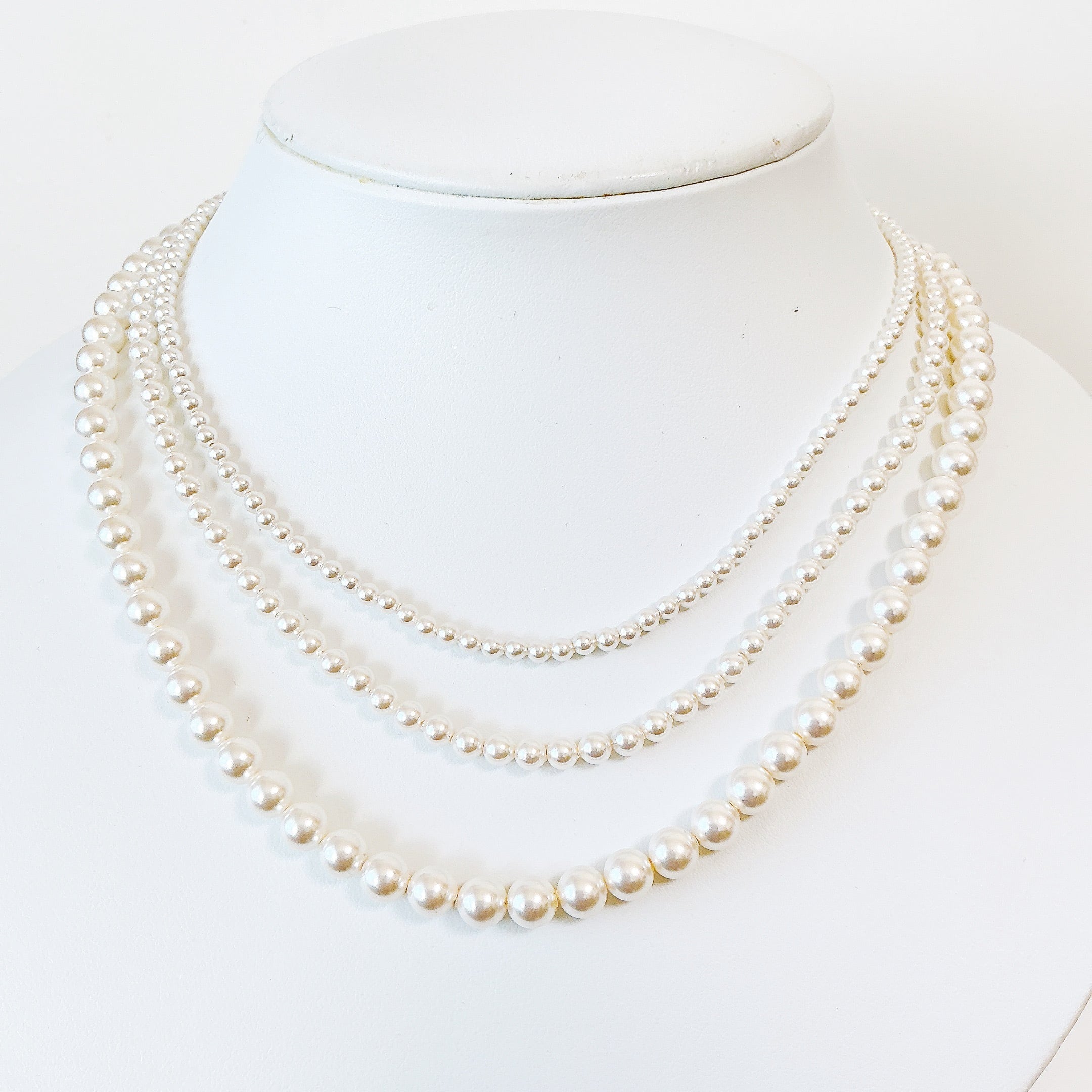 三連パールネックレスは、 timeless elegance を感じさせる素敵なアイテムです。