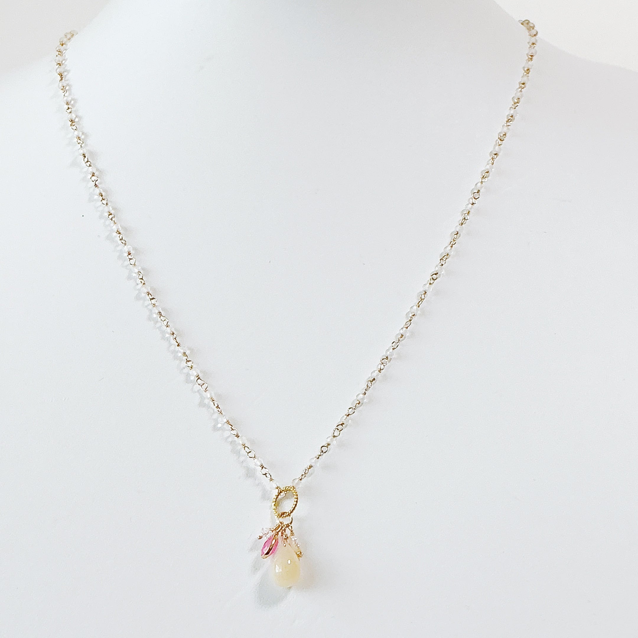 柔らかな輝きを放つ天然石の水晶と14kgfはシンプルなデザインが特徴で、繊細ながらも存在感のあるアイテムです。