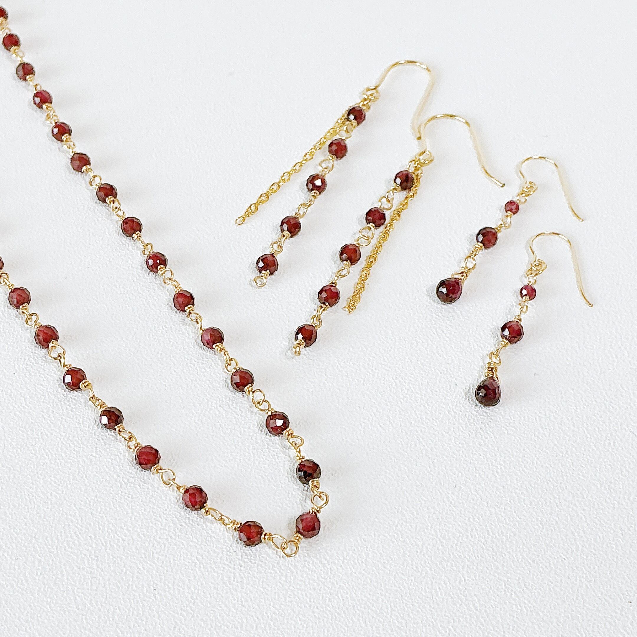 美しい天然石ガーネットを使用した14kgfネックレスは、シンプルでありながらも深い色合いが特徴のアイテムです。