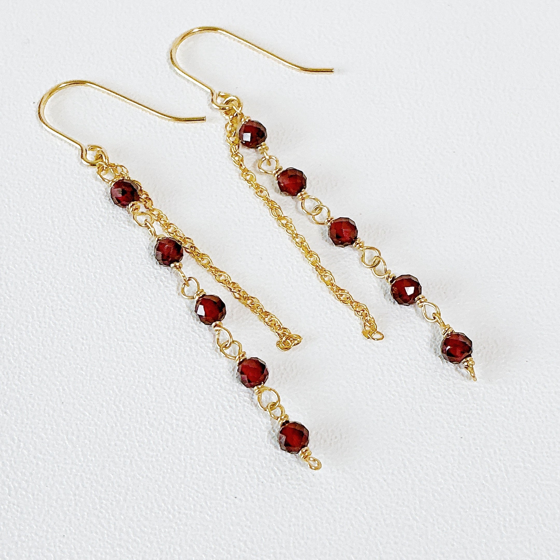 美しい天然石ガーネットを使用した14kgfピアスは、シンプルでありながらも深い色合いが特徴のアイテムです。