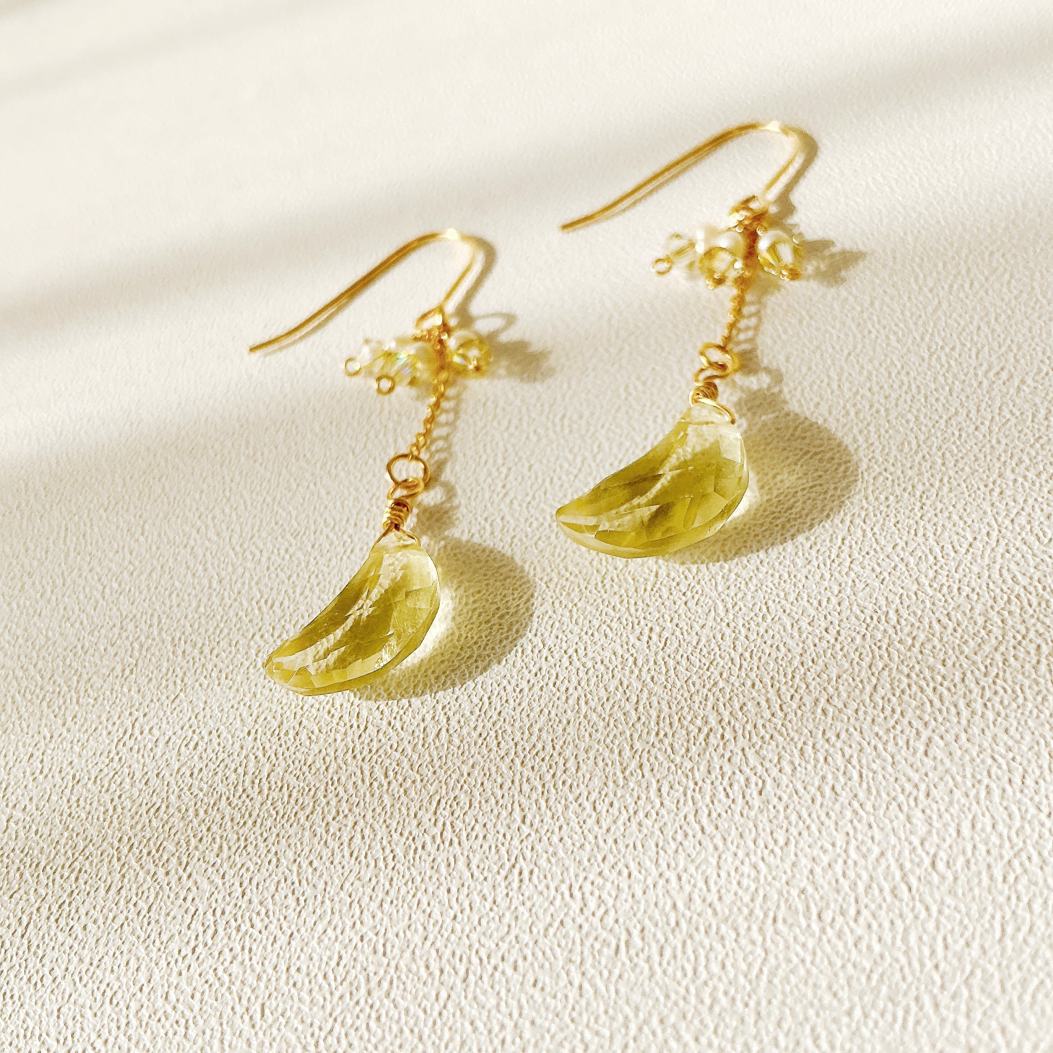 美しいレモンクォーツを使用した14kgfピアスは、月型のデザインが特徴のアイテムです。