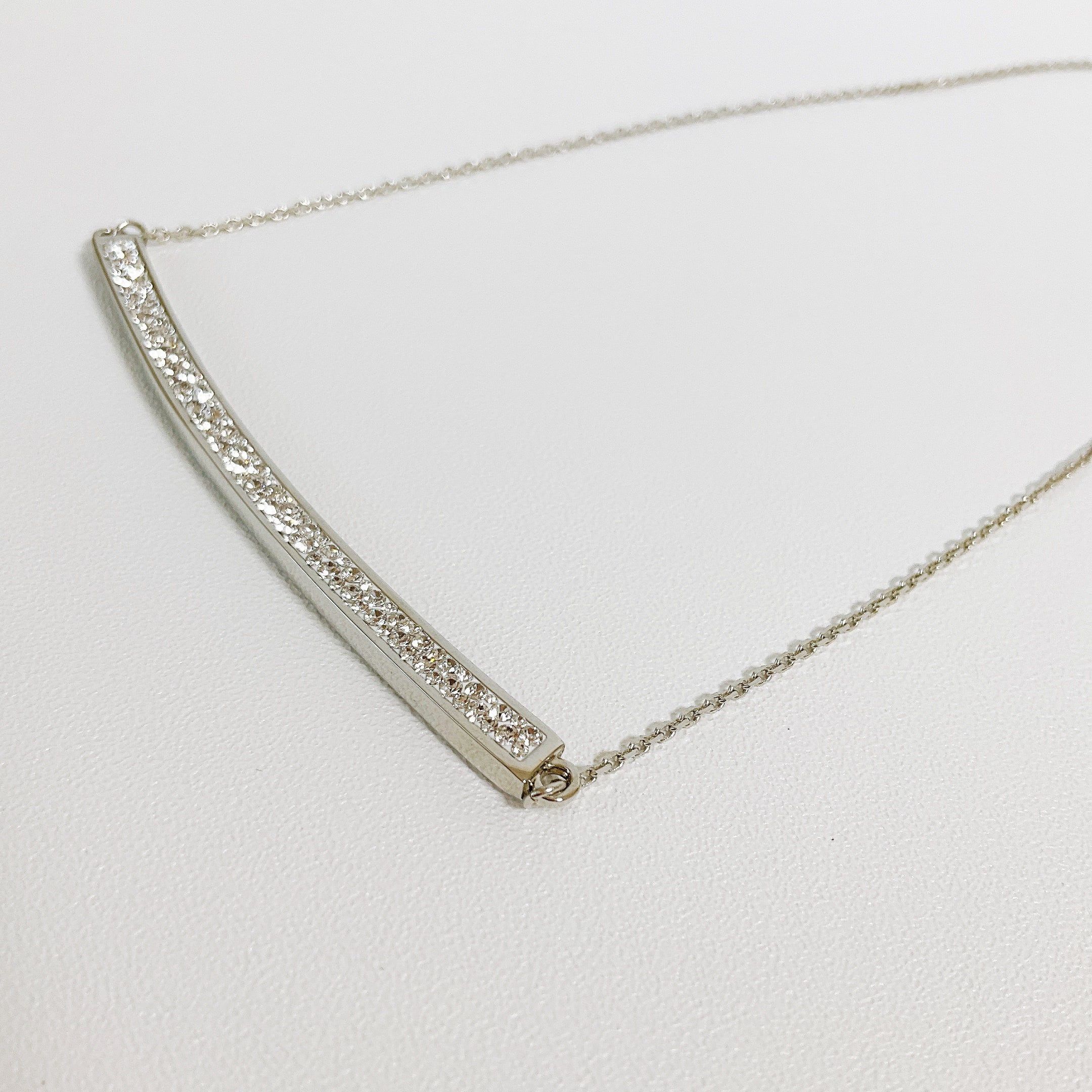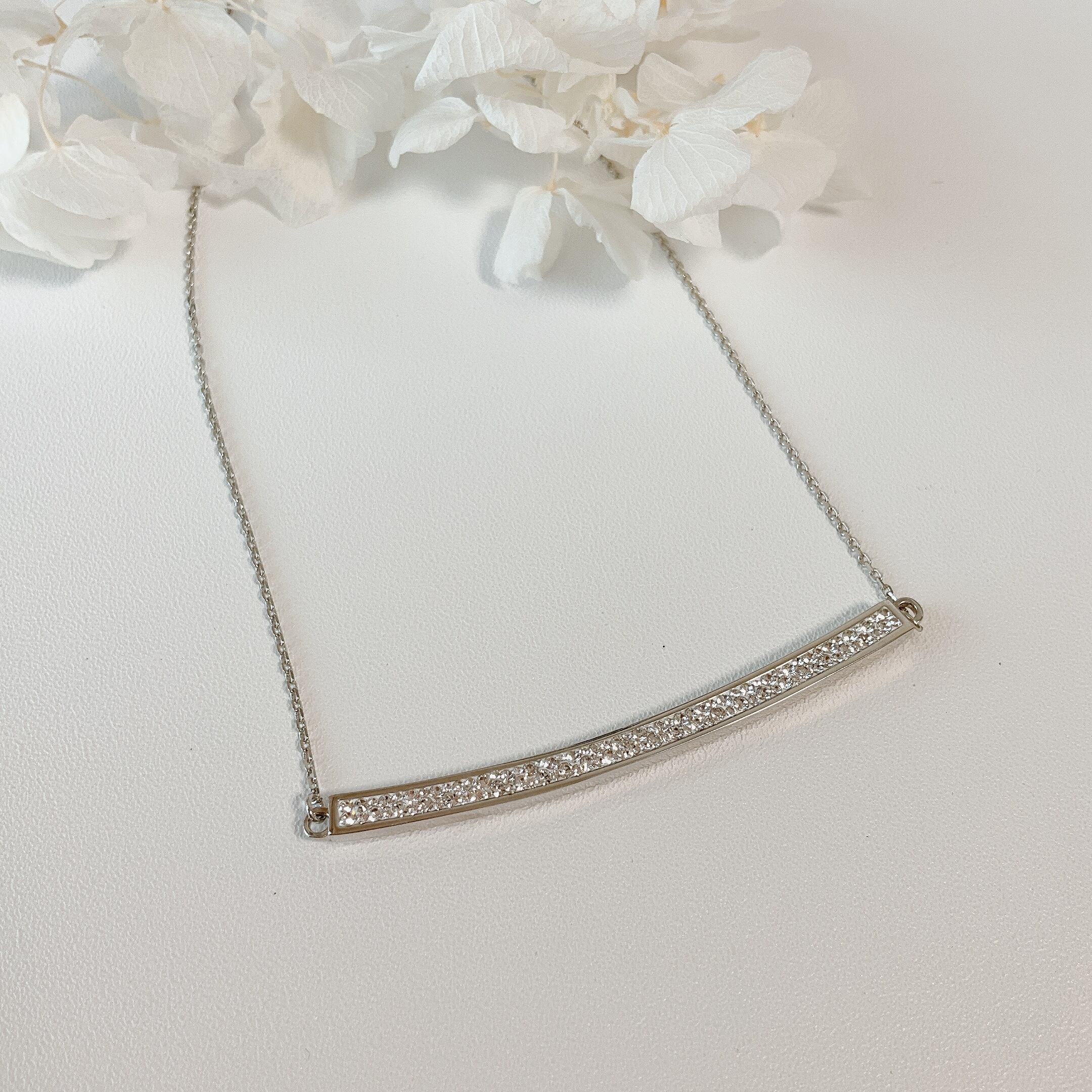 シンプルで横に少しカーブしたスティックはエレガントな装いに合わせやすいネックレスです。
