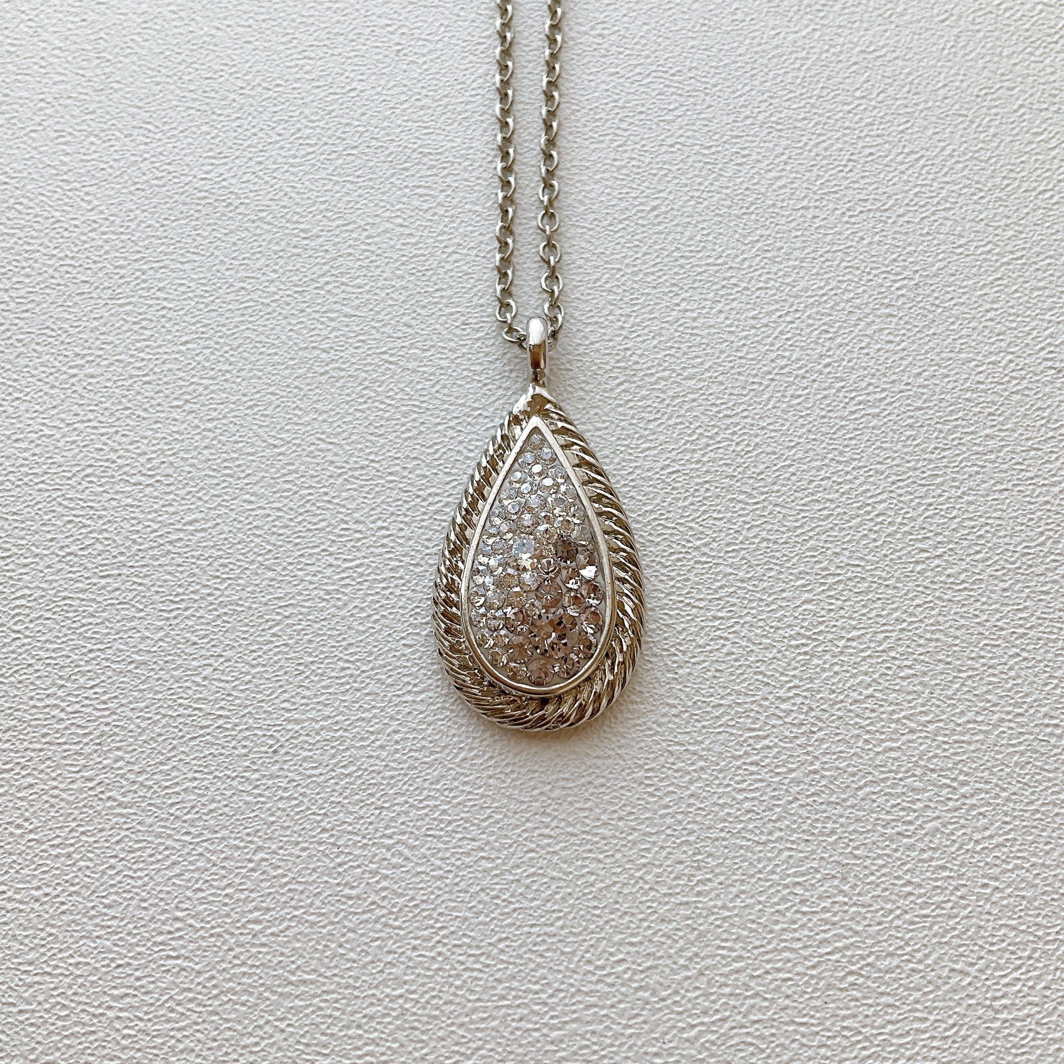 シズク型のネックレスは形がシンプルのためクリスタルビジューを二色使用し、微妙な色の違いを楽しんでいただけます。