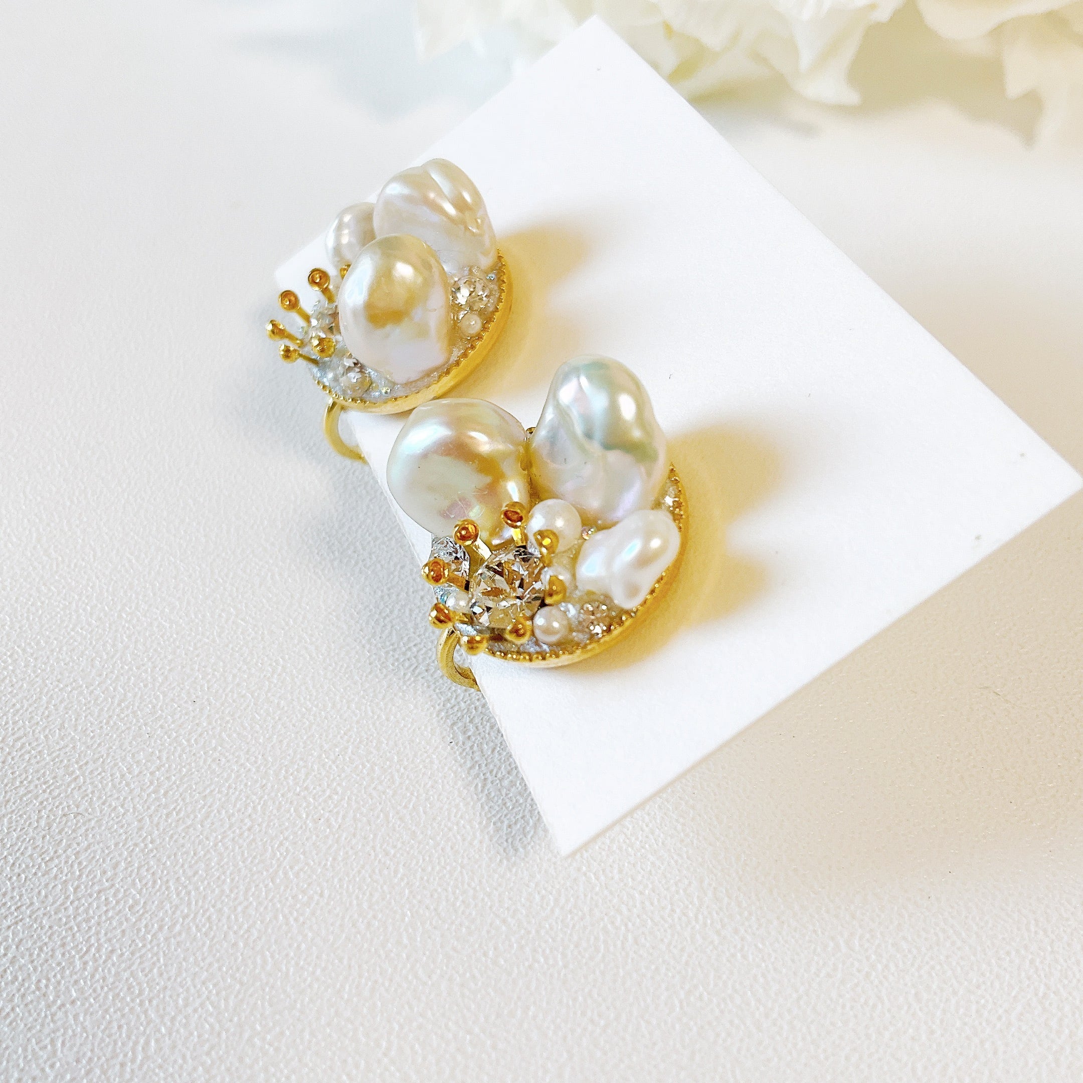 この淡水パールのイヤリングは、大切な日の装いや普段使いにも最適です。
